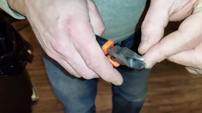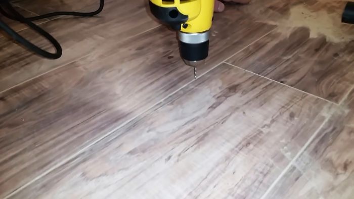 Затем просверливаем ламинат на нем, желательно на замке, чтобы отверстие меньше бросалось в глаза.