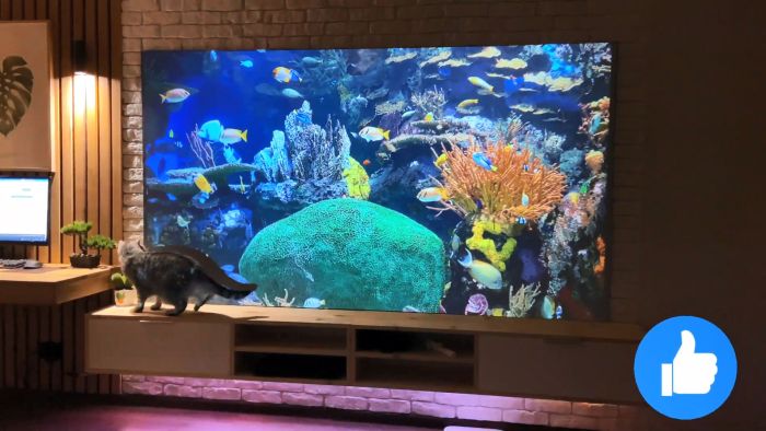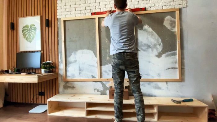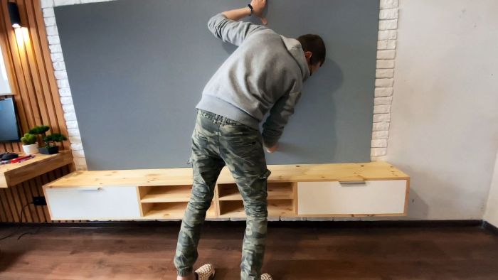 В крайнем случае, можно его прикрутить саморезами. Обыграть экран в интерьере можно декоративной гипсовой плиткой, приклеенной по периметру. Она позволит скрыть вид сбоку. Так экран станет частью интерьера, и не будет невыгодно выделяться.