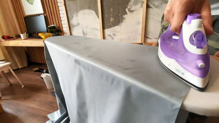 Она выглаживается от складок утюгом, так как выровнять их растягиванием не получится.