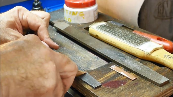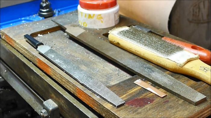 Полученный в итоге скребок может использоваться для чистки напильника. Его плоская сторона прикладывается к полотну напильника сбоку по направлению рисок. Нужно водить инструментом параллельной насечкам, пока медь не притрется за счет своей мягкости.
