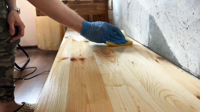 Распиливаем сосновую доску на равные части. Сжимаем их струбцинами и шлифуем торцы наждачной бумагой.