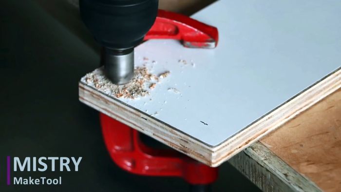 По уже готовым в профильных заготовках отверстиям сверлим отверстия и во внутренних заглушках из дерева.