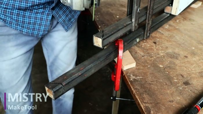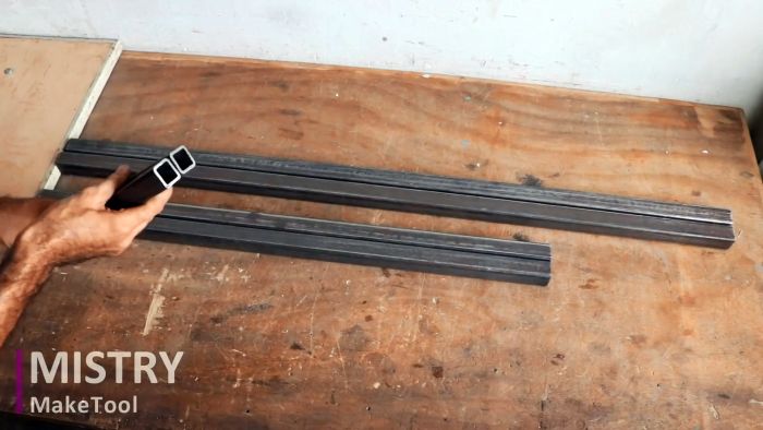 Согласно расчетам, нарезаем из профильной квадратной трубы по две заготовки трех типов длины.