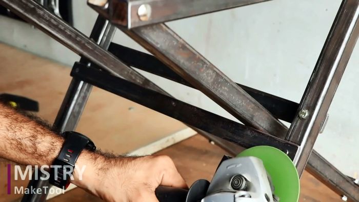 Спереди сидения по горизонтали его силовых элементов намечаем линии реза выступающих углов задних ножек и удаляем их болгаркой по разметке.