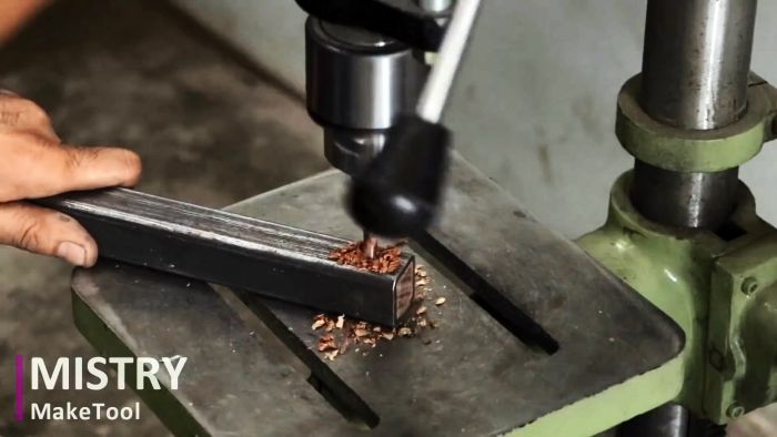Инструменты: измерительно-разметочные приспособления, молоток и керн, сверлильный станок, шуруповерт, метчик, болгарка, ручная ножовка и напильник по металлу, и т. д.