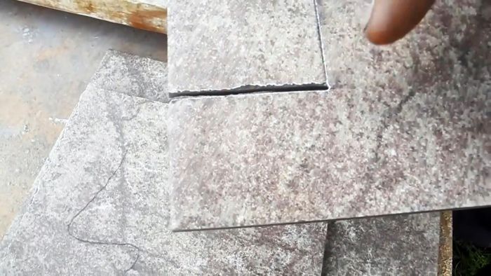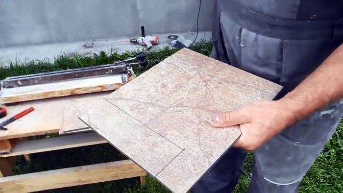 Если это Г-образная подрезка, то оставшуюся длинную сторону можно сломить по царапине от плиткореза. Она оборвется по перпендикулярному относительно ее резу от болгарки. В П-образных подрезках нужно будет сделать пропилы по боковым линиям, а по центральной произвести надлом.