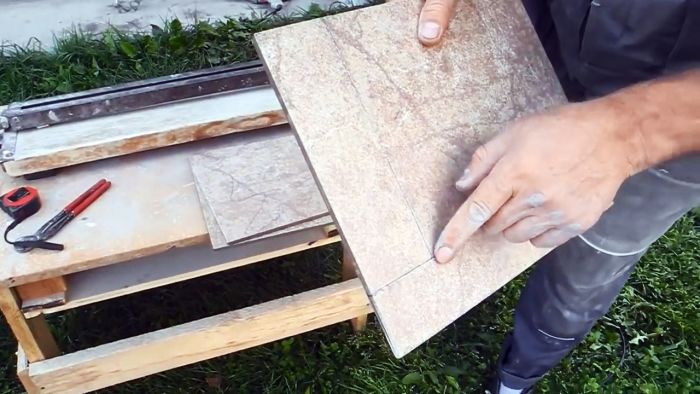 Этот способ позволяет резать без сколов даже плитку, которая была перекалена. Это часто бывает с декорами, так как они проходят более сложную термообработку, поэтому их эмаль скалывается даже при резке дорогими фирменными алмазными дисками.