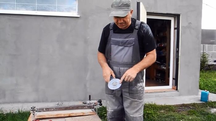 Резать нужно сбоку царапины смещаясь в ту часть, что будет уходить на выброс. Диск должен пилить практически впритирку к дорожке от ролика плиткореза.