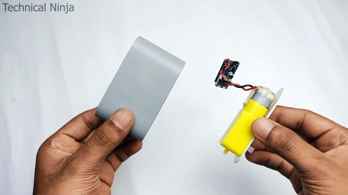 К контактам двигателя припаиваются провода. Их второй край нужно припаять к преобразователю напряжения.