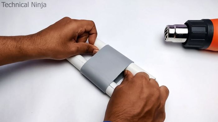 Для изготовления корпуса прибора необходимо разогреть отрезок трубы длиной 6-8 см до размягчения пластика.