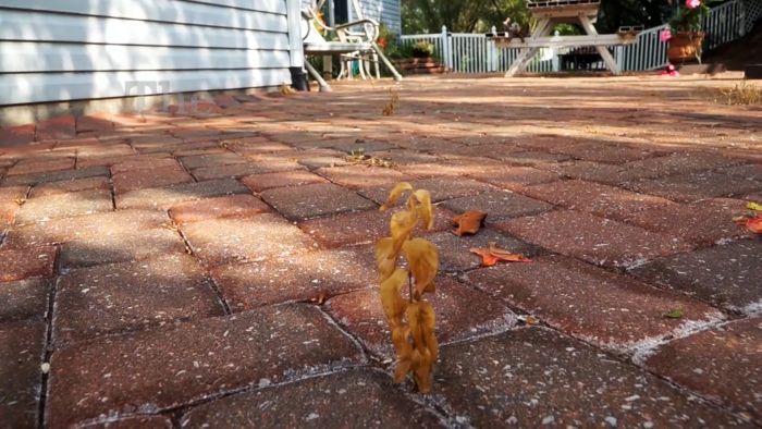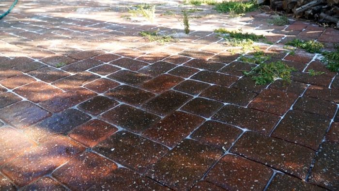 Процесс борьбы с сорняками на тротуарной плитке