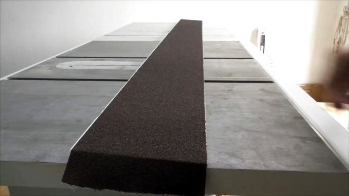Удаляем защитную пленку со скотча и приклеиваем полосу наждачки зернистостью наружу. Отрезаем концы под размер длины основания.