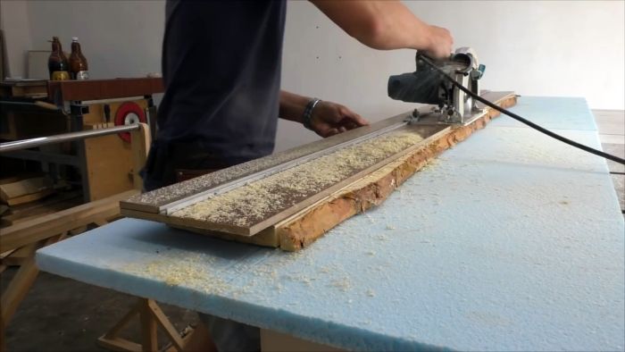 Выполнить ручной циркулярной пилой ровный распил не так просто. Из-за неоднородности дерева и по другим причинами пила всегда стремится уйти в сторону. Конечно, можно купить направляющую шину в магазине, но заводское фирменное изделие по цене сравнимо с самой пилой. Обладая начальными навыками столярного и слесарного дела, это полезное дополнение к инструменту можно изготовить самому.