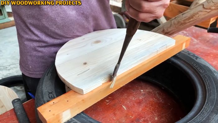 Сиденье собирается с использованием круглой заготовки и двух половинок заготовок.
