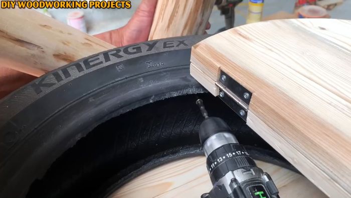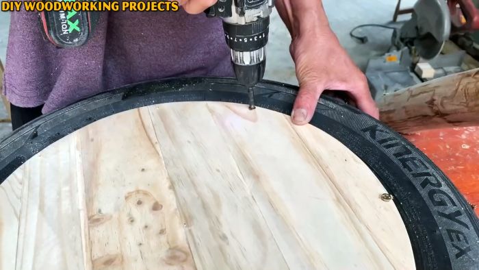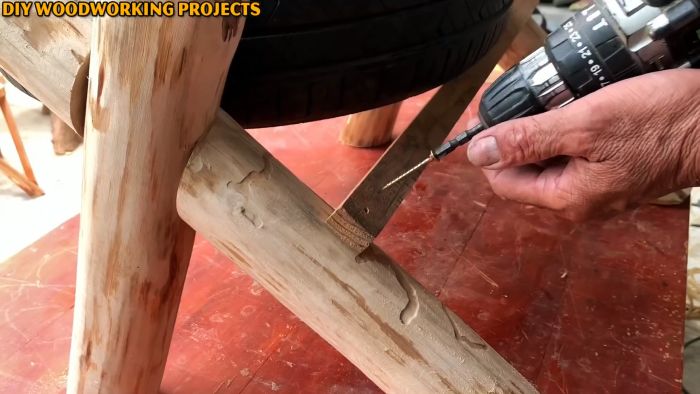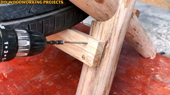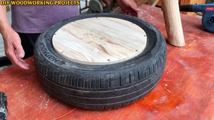 С другой стороны сиденья крепится цельная круглая заготовка с помощью саморезов и шуруповёрта.
