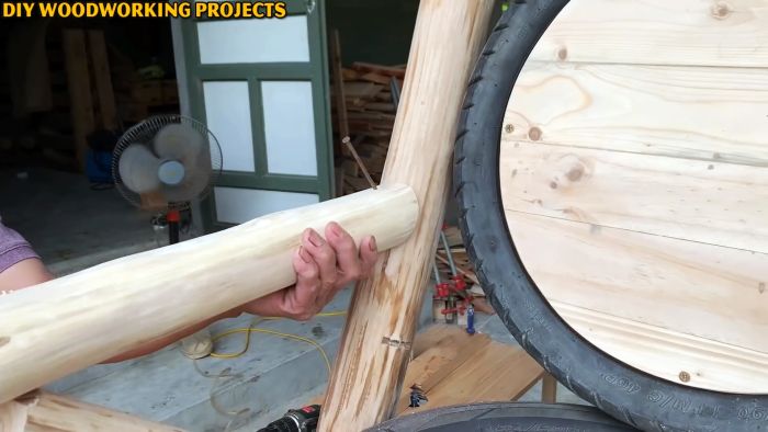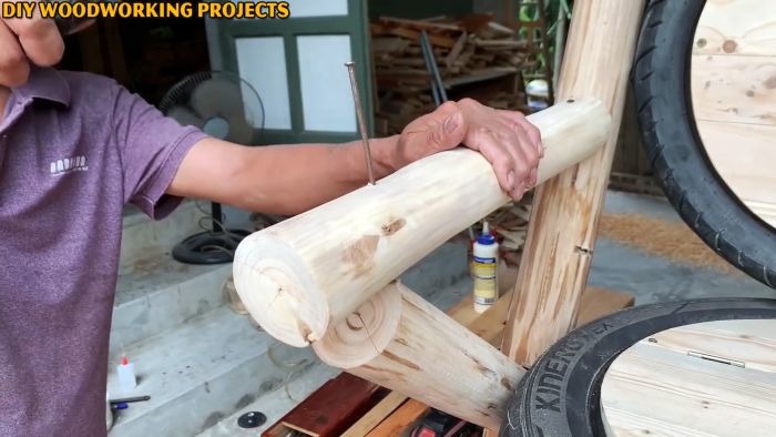 С двух сторон спинки крепятся круглые деревянные заготовки саморезами.