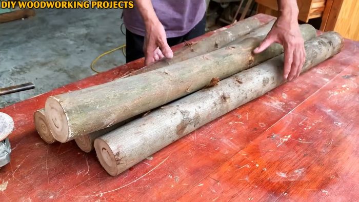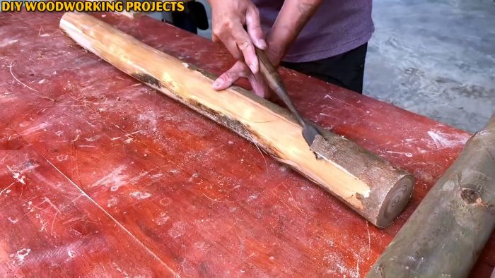 Дополнительно вам понадобятся ещё два бревна для изготовления ручек для кресла, их тоже нужно будет очистить от коры и отшлифовать.