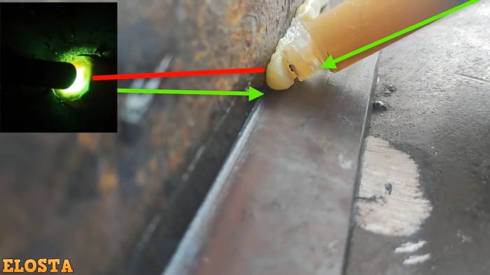 Когда вы поймете этот принцип, то под таким же углом и с этой же скоростью проведите разожженный электрод. Если сделать именно так, то сварочный шов будет практически идеальным. Потренировавшись со шприцем и гелем можно получить нужные навыки не испортив ни одной заготовки и электрода.