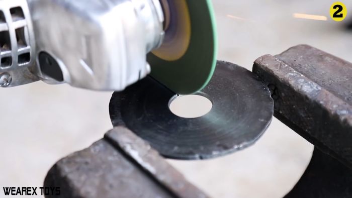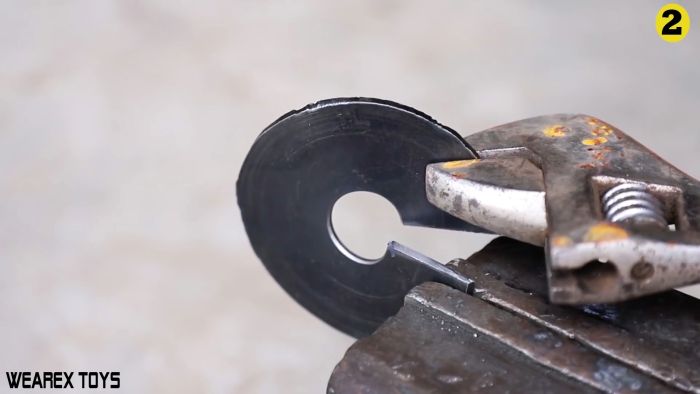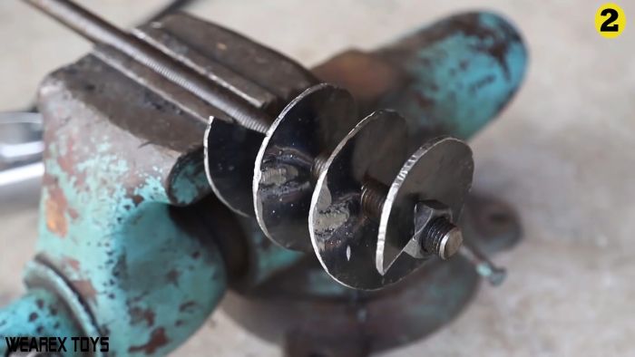 Полученные шайбы разрезаются, и их края разводятся в стороны.