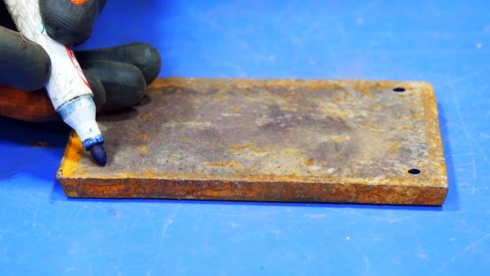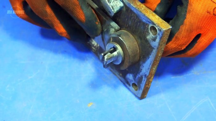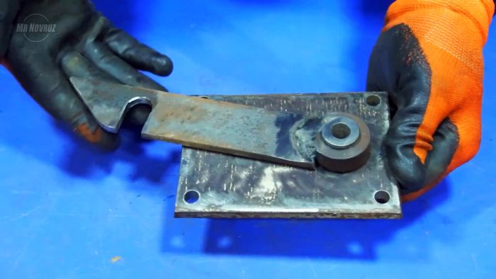 Основание замка изготавливается из пластины толстой листовой стали размером 150х80 мм. В углах она просверливается для крепления к внутренней стороне двери.