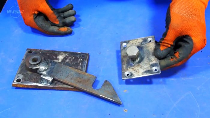 На пластину приваривается ограничитель хода задвижки, чтобы он блокировал ее подъем, исключая перекидывание. В его качестве можно использовать обрезок квадратного прутка.