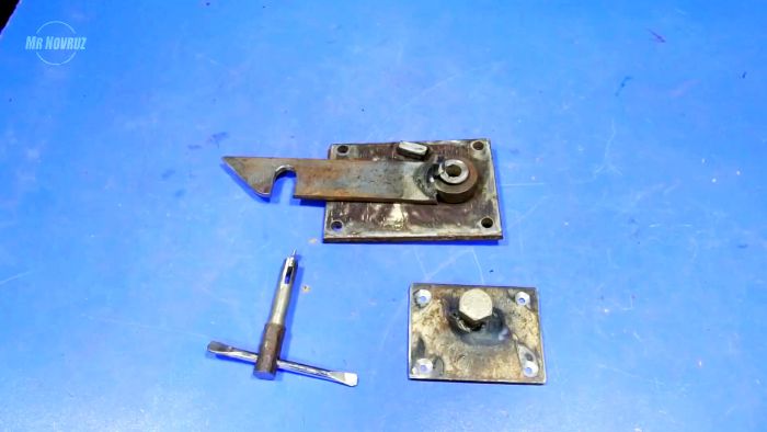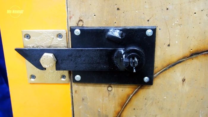 В итоге получается простой, но мощный массивный замок. Обычные тонкие отмычки при захвате задвижки сгибаются, так как она для них очень тяжелая. Его сочетание с покупными замками существенно повысит безопасность вашей мастерской или гаража.