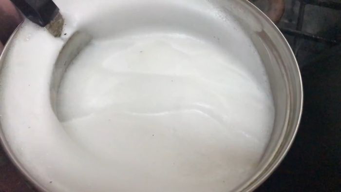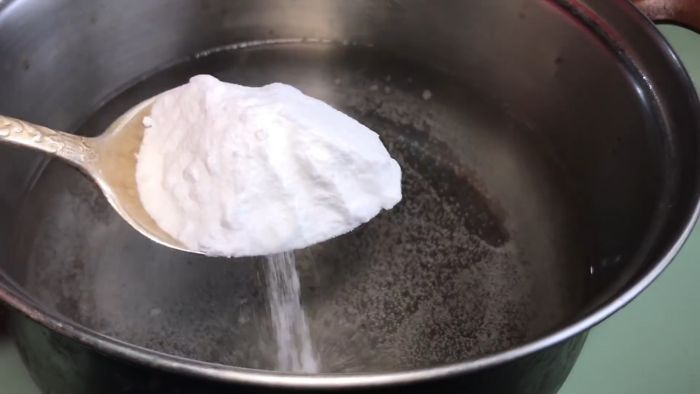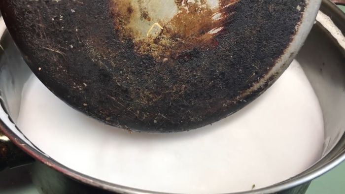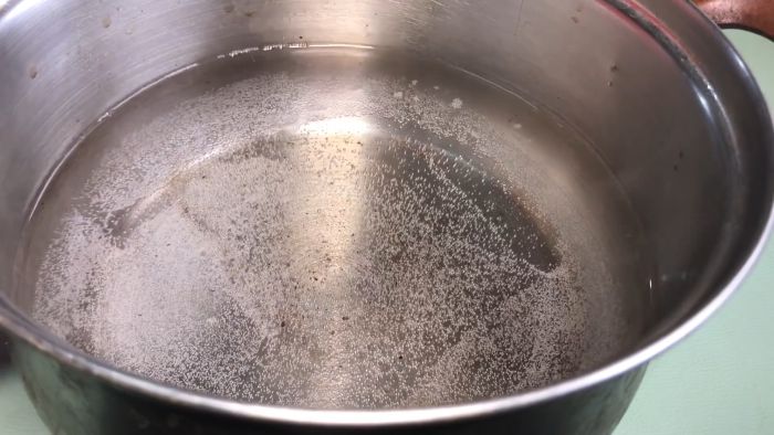 Первым делом необходимо подготовить емкость под кипячение посуды с нагаром. Наливаем туда воду и ждем закипания.