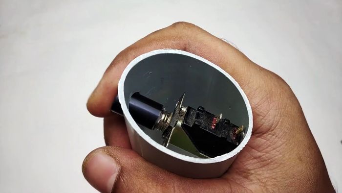 В неё монтируется переключатель на пружине, рассчитанный на 3 А.