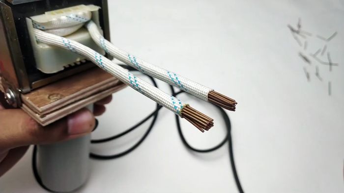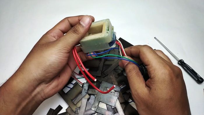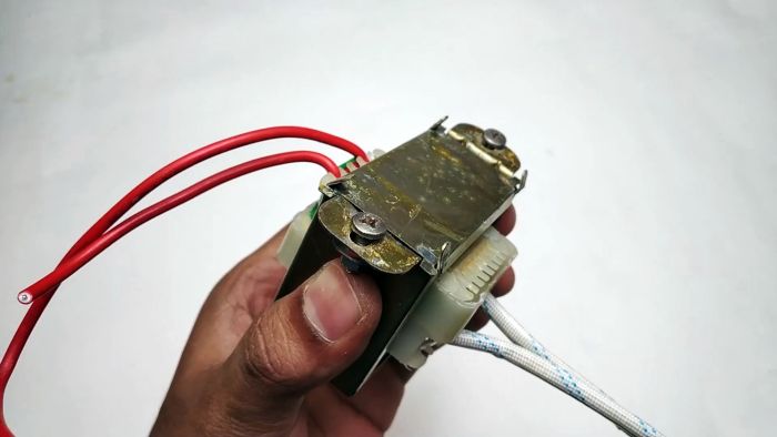 Трансформатор вытаскивается из корпуса. Из устройства извлекается сердечник.