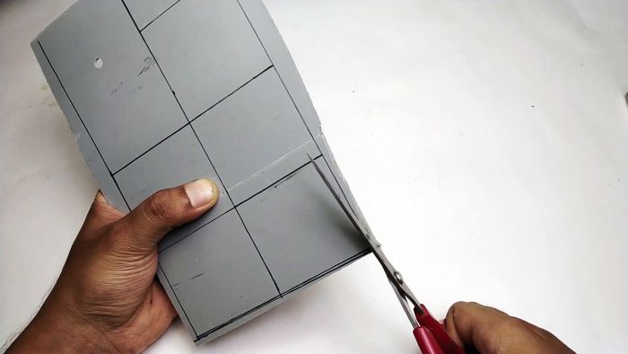 Из куска поливинилхлорида вырезаются стенки корпуса (пять штук).