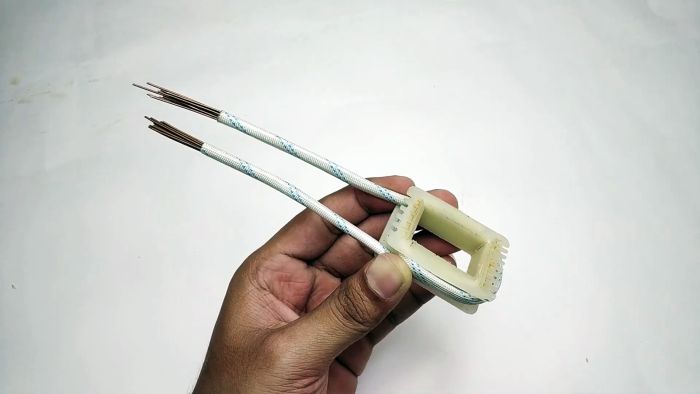 Катушки с обмотками разбираются, снимается первичная обмотка. Вместо неё наматывается три витка полимерного рукава с запасом.