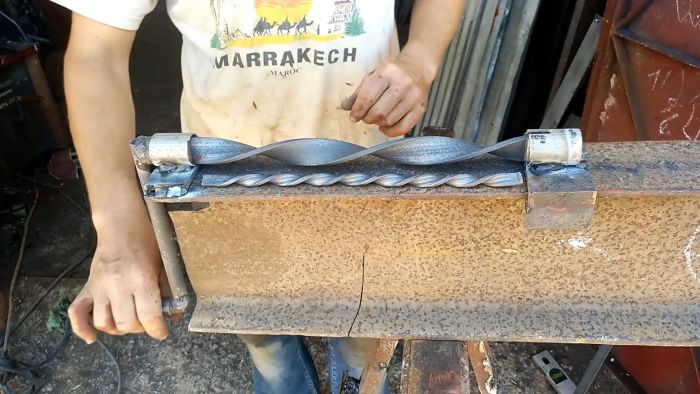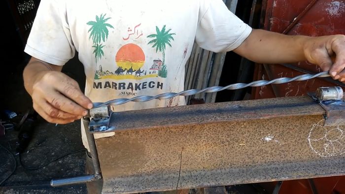 Свитые из стальной полосы в спираль элементы служат как частью силовой конструкции оконных и дверных решеток, так и декоративным украшением. Для их изготовления с помощью универсальных инструментов нужно участие двух человек и часто нагрев заготовки. Но, если сделать довольно простое приспособление практически без затрат, то эту операцию может выполнить один человек безо всякого нагрева.