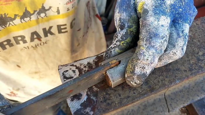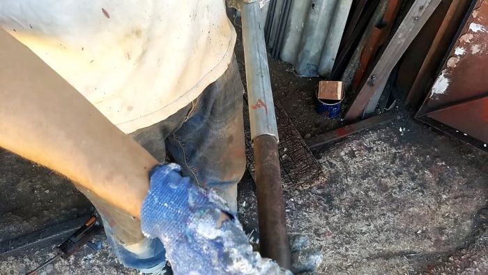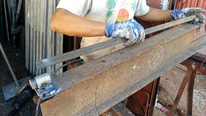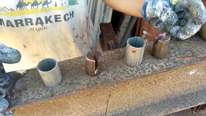На трубе и стальном круглом стержне с двух концов выполняем разметку под соответственно поперечный и продольный расчетный пропил. От трубы и стального стержня по разметке отрезаем два фрагмента необходимой длины.
