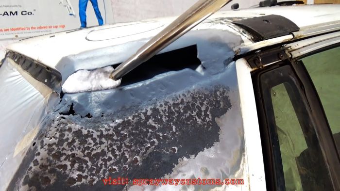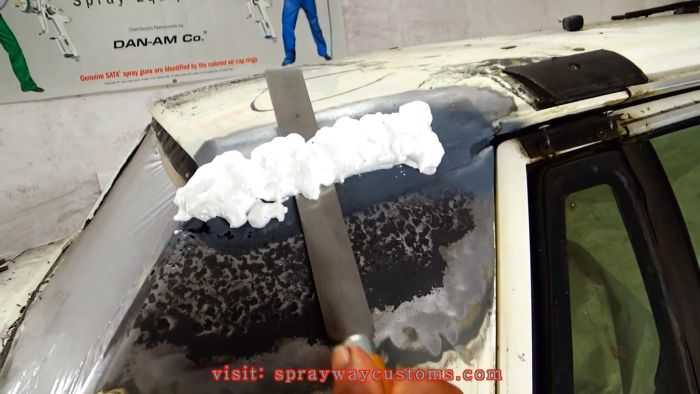 Вырезанный очаг коррозии заполняем с запасом недеформируемой пеной.