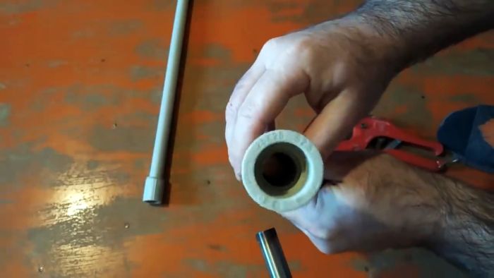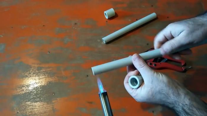 Необходимо подготовить ровный торец спаиваемой трубы, обрезав его ножницами или ножовкой.