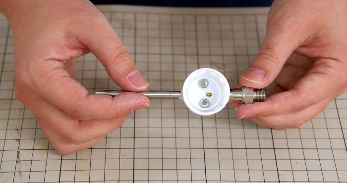 После этого на нее вклеивается крышка с саморезами на холодную сварку. Отверстие в ней и трубке необходимо совместить. Благодаря саморезам крышка будет держаться надежно.