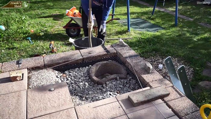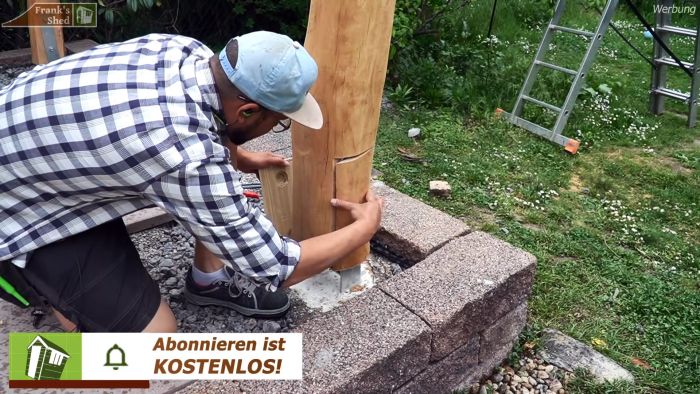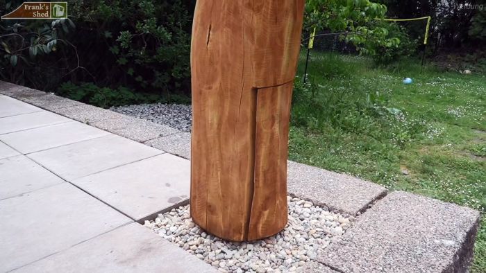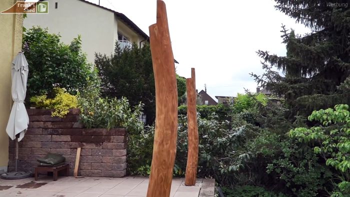 При возникновении желания построить террасу с использованием столбов из кривого кругляка, возникает проблема с их установкой. Неправильная геометрия таких опор смотрится очень интересно и выгодно на фоне участка загородного дома, но создает затруднение при монтаже. Предлагаемый способ позволяет установить столбы на 100% надежно, ровно, а кроме этого еще и предотвращает их гниение.