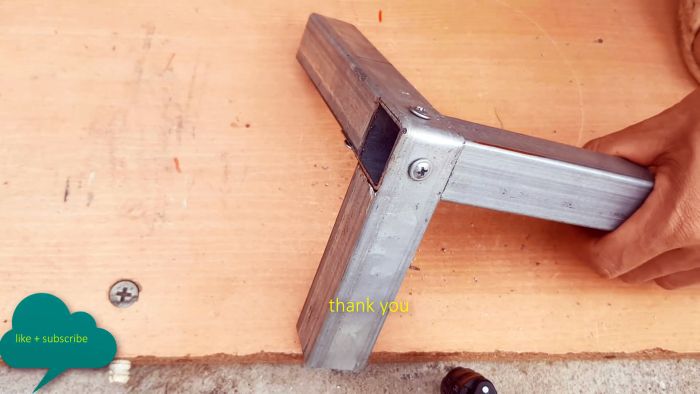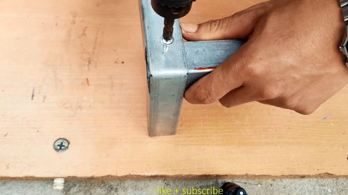 Остается только закрепить соединение саморезами. Перед их вкручиванием важно проконтролировать прямые углы угольников.