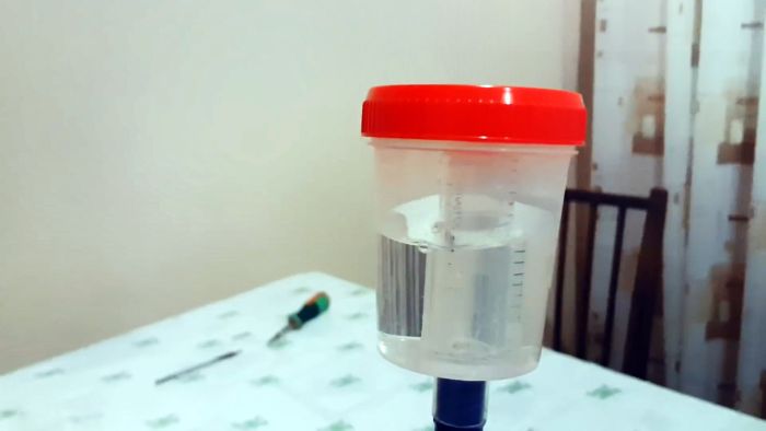 В дне баночки для анализов просверливается отверстие 16 мм.