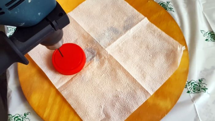 Еще потребуется сделать мелкую перфорацию в крышечке баночки, чтобы с нее выходил газ.