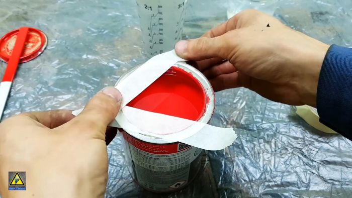 Если у вас стоит задача перелить часть краски из банки в другой сосуд, то просто так этого не сделать, так как краска при переливании испачкает не только край горловины, но и часть основания. Кто пробовал - тот знает о чем идет речь.