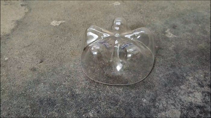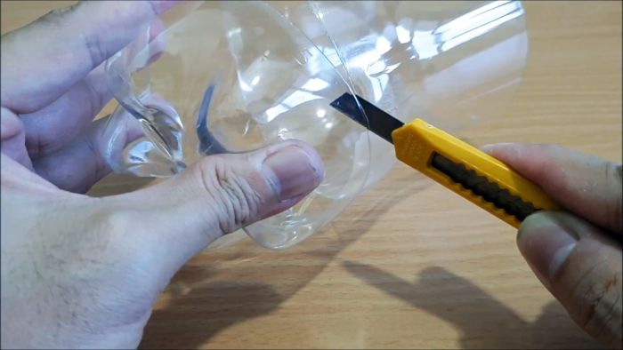 От пластиковой бутылки при помощи канцелярского ножа отрезаем дно.