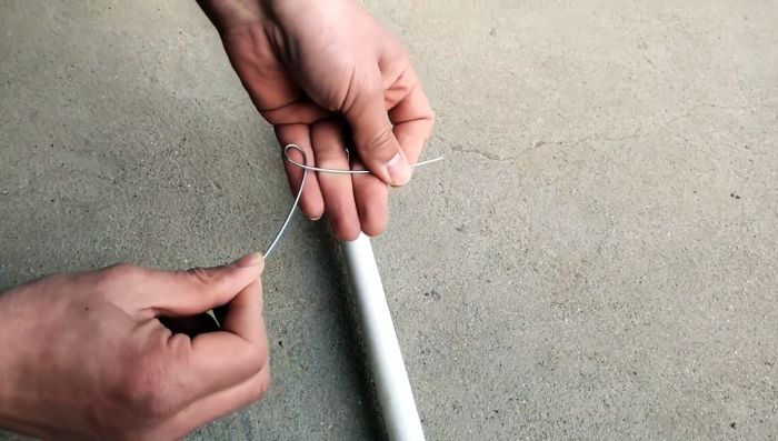 Необходимо подготовить кусок проволоки и сложить его вдвое. В таком виде он должен получиться значительно длиннее окружности шланга. Его края при складывании должны пересечься, чтобы сформировать петлю.