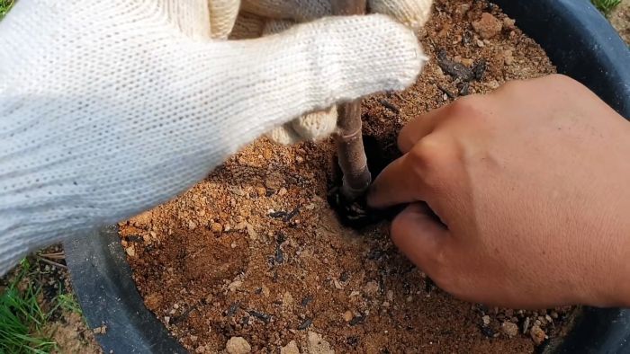 Затем он сажается в грунт. Корни аккуратно помещаются в лунку и присыпаются. Они нежные, поэтому важно их не повредить.