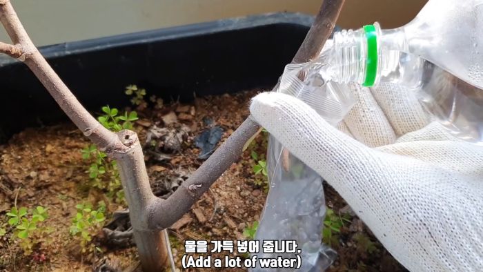 Так как выращенные в воде корни еще не адаптированы под получение питательных веществ из почвы, то для начала новое растение обильно поливается. Если такой отводок начать делать весной, то после пересадки в начале лета саженец успеет окрепнуть к осени, и пойдет в зиму уже здоровым деревцем.