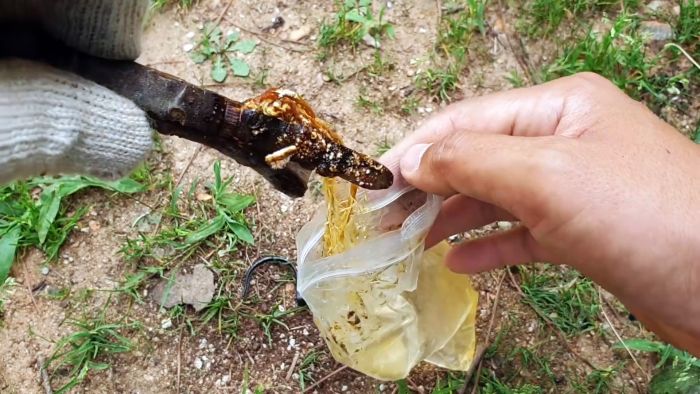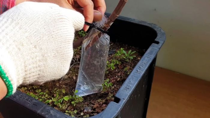 Тот закрепляется на ветку с помощью нейлоновой стяжки или веревкой. Пакет должен быть закрытым, чтобы предотвратить испарение влаги.