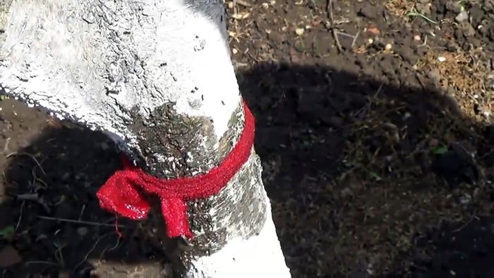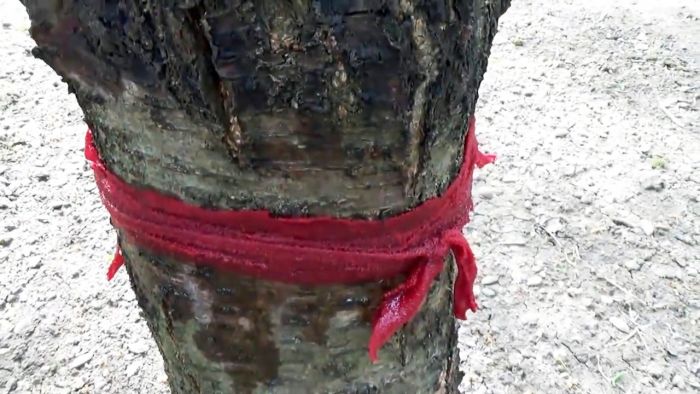 Из хорошо впитывающей мягкой ветоши необходимо изготовить ленту, пропитать ее в подсолнечном масле, и завязать на крону дерева.