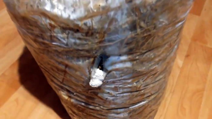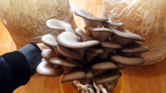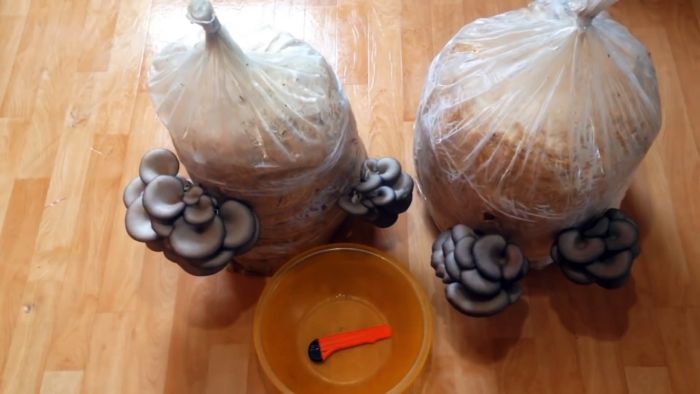 Первый урожай самый богатый, можно срезать как минимум 2 кг грибов с мешка.
