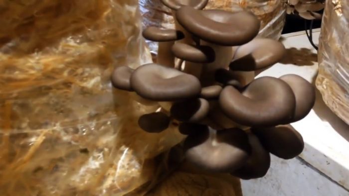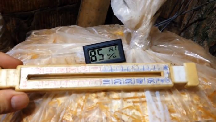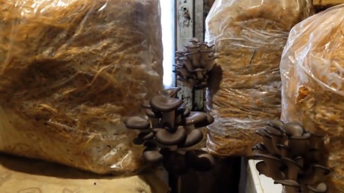 После начала формирования рылец грибниц, нужно переместить мешки в прохладное помещение с температурой 12-18°С и влажностью 80-85%. Это оптимальные условия для плодоношения.