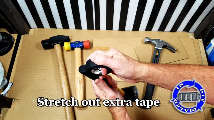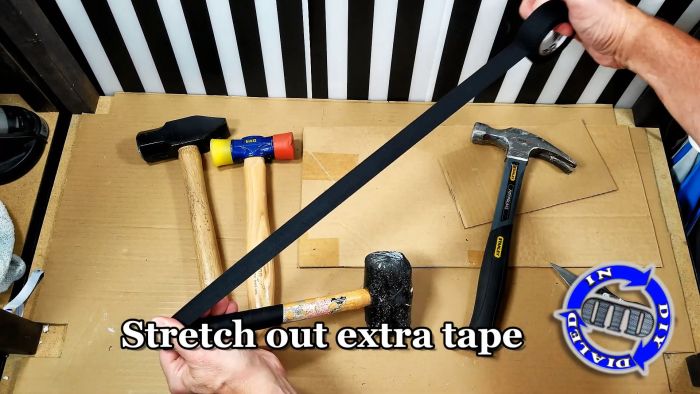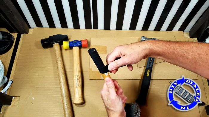 Изоленту нужно приклеить вдоль на конце рукояти инструмента за 5 см от края.